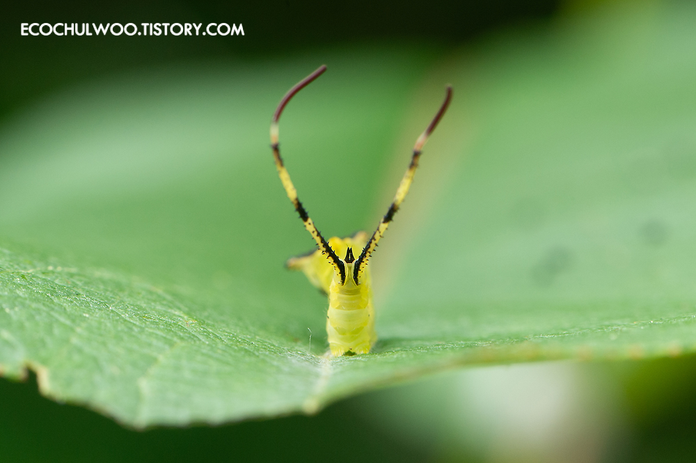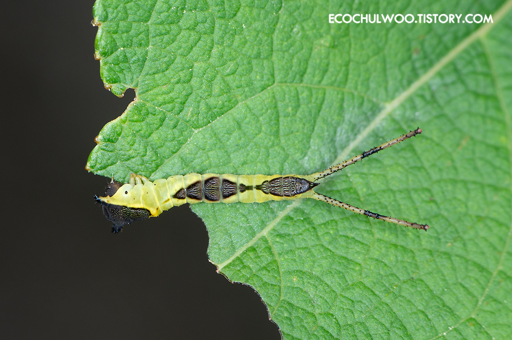 잎을 갉아먹고 있는 애벌레를 만났다.