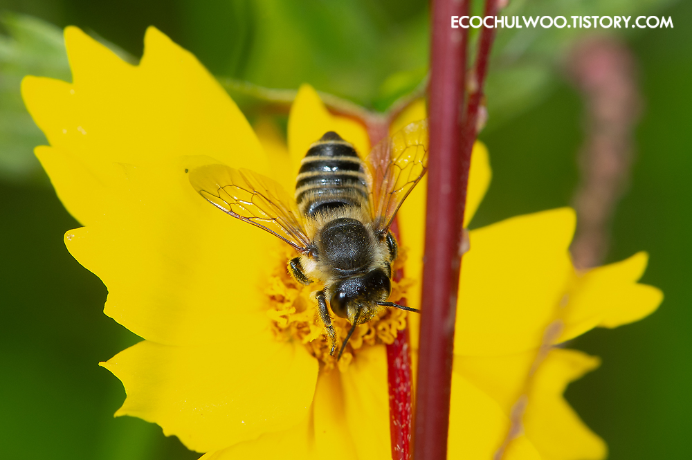 잎을 오리는 가위벌 종류인데